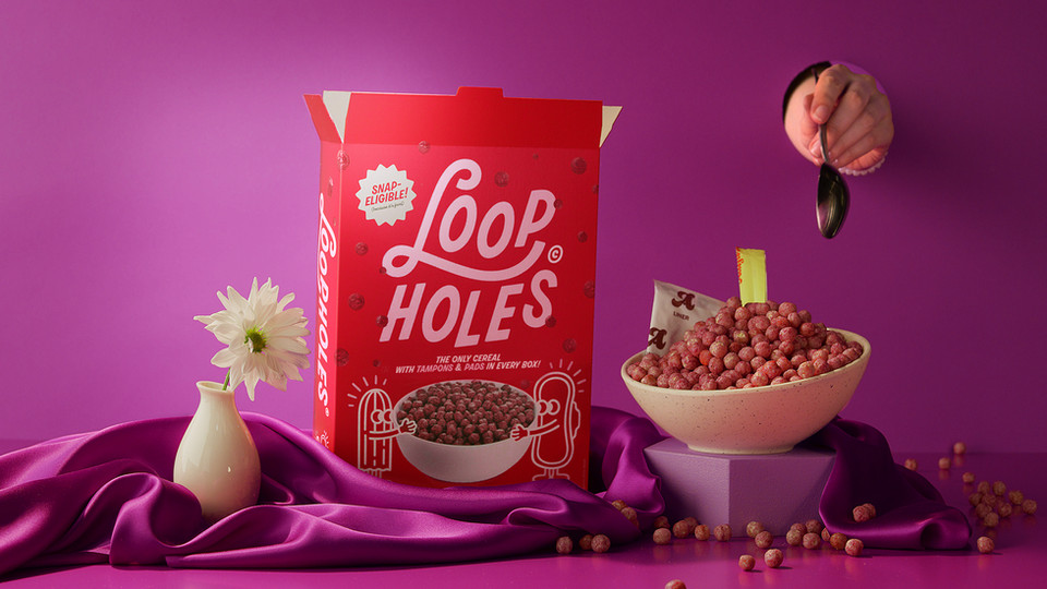 YOU’RE PROBABLY WONDERING WHY THERE ARE TAMPONS & PADS IN THIS CEREAL BOX.